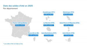Les départements d’Outre-mer disposent de calendriers différents pour les soldes d’été 2026. Les dates indiquées sont les suivantes :
